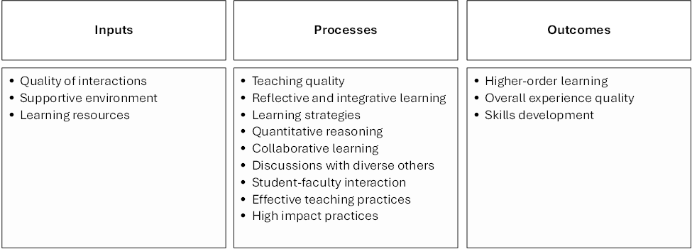 After two decades developing the student engagement agenda, the world has evidence about what has been achieved, and the limits of further progress. International research on student engagement spanning dozens of countries and years has highlighted several common measures of education inputs, processes and outcomes (Figure 4). Following the ‘internal logic’ etched decades ago, these measures focus on class and campus matters.